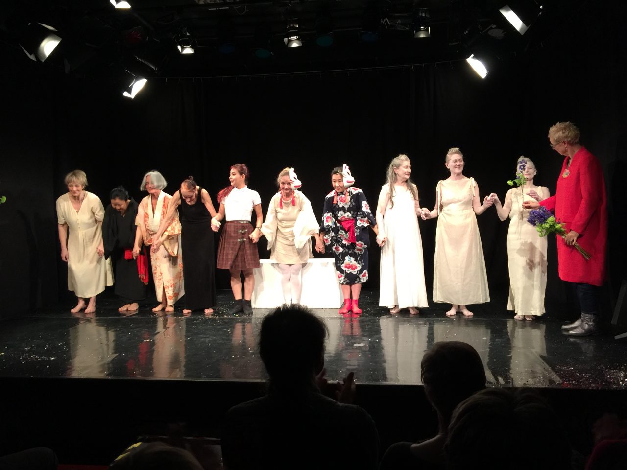 “A woman’s work is never done” – damit betitelte Doris Dörrie das Butoh-Tanzstück für dessen Choreografie sie die begnadete Tänzerin Aya Irizuki aus Japan nach München holte. Aya Irizuki ist regelmäßigen Kinogängern bekannt durch ihre Rolle der Yu im Film „Kirschblüten – Hanami“ (2007), außerdem spielte sie in „Grüße aus Fukushima“ (2016) die Tochter der Hauptdarstellerin Satomi. Nach ihre Butoh-Solostücken wie „Swimming Into The Lungs“ (2010) kehrte sie nun ein weiteres Mal in die Pasinger Fabrik zurück, um das Münchner Publikum mit ihrem Tanztheater zu begeistern. Dafür konnte Aya neun Frauen über ein Casting gewinnen, die in ihrer langen Lebensgeschichte über ganz verschiedene Wege den Zugang zum Tanz fanden und mit sehr viel Gefühl und Hingabe in wenigen Wochen das Stück mit ihr einstudierten. Die Begleitmusik spielten Nami Kamata (Gesang) und Masako Ohta (Piano) ein und bildeten damit den perfekten Rahmen für den modernen Ausdruckstanz. Das Stück stellt eine Hommage an die Frau dar, deren Arbeit nie endet egal ob als Tochter, Schwester, Mutter oder Großmutter. Insofern spielten die Tänzerinnen im Prinzip ihre eigenen Rollen als Frau und transportieren durch den Butohtanz sehr authentisch ihre eigenen Erlebnisse und Lebensgeschichte. Herzergreifend zum Ausklang der Klassiker „Hallelujah“ von Jeff Buckley, der leider viel zu früh von uns gegangen ist. Das Premierenpublikum war begeistert von der Vorführung und alle weiteren Termine im Februar sind leider bereits ausverkauft. Wer das Stück trotzdem unbedingt noch sehen möchte, sollte einfach sein Glück probieren. Die Pasinger Fabrik ist nur wenige Meter vom Bahnhof Pasing entfernt und vielleicht wird bei der Vorstellung am heutigen Donnerstag und den beiden Vorstellungen am Freitag die ein oder andere Karte nicht abgeholt oder es fallen Gäste krankheitsbedingt aus. Außerdem besteht die Möglichkeit, dass es im Jahresverlauf weitere Vorstellungen gibt und wir Aya Irizuki mit den neun Tänzerinnen nochmals in München sehen können – letztendlich as we already know: “A woman’s work is never done”.