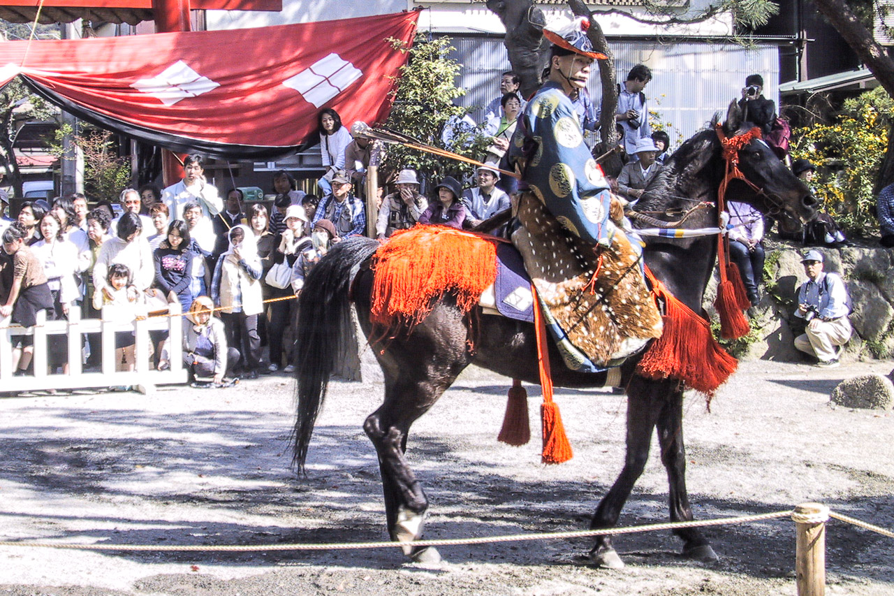 Immer am 16. September findet am Hachimangu-Schrein in Kamakura das Reiterspiel “Yabusame” statt. Dabei schießen die Bogenschützen sehr treffsicher aus vollem Galopp auf eine Zielscheibe.