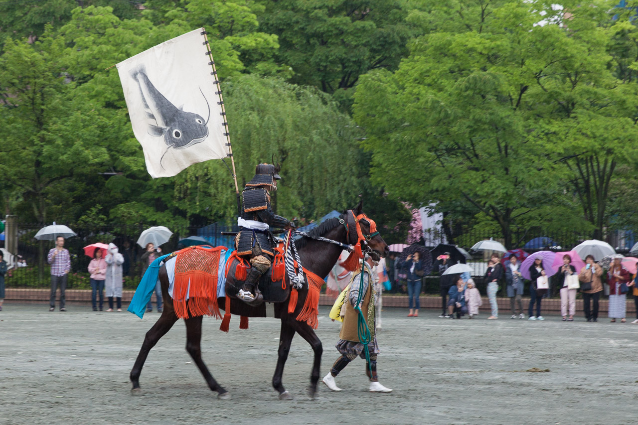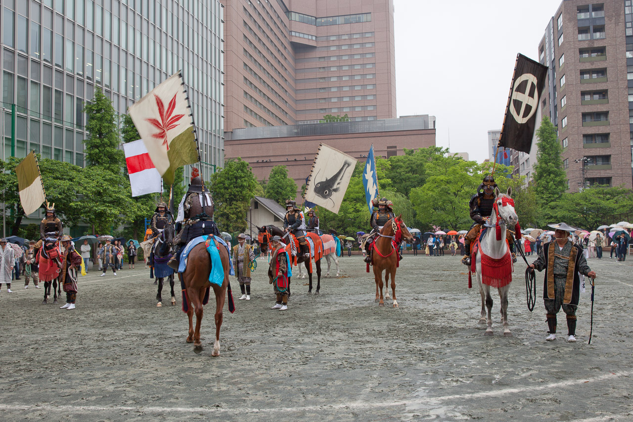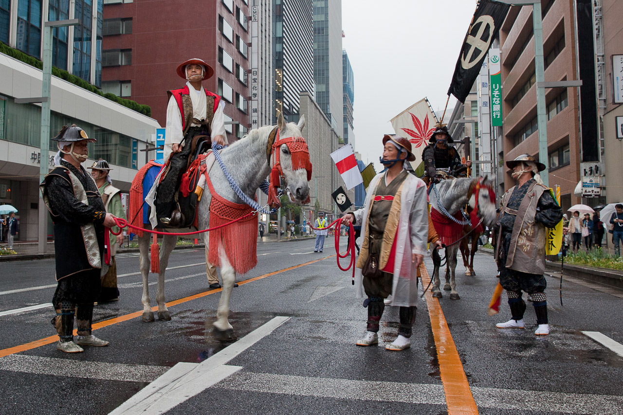 Immer im Mai findet das zweitgrößte Schreinfest mit 70 Trageschreinen in Tokio statt. Bei der Prozession durch die Straßen nehmen auch Reiter aus Soma (bei Fukushima) teil und zeigen in voller Samuariausrüstung ihre schönen Pferde. Wer als Pferdeliebhaber Ende Juli in Nordjapan ist, sollte sich übrigens das Soma Nomaoi Fest mit seiner über tausendjährigen Geschichte nicht entgehen lassen. Es ist wohl das größte Reiterfest in ganz Japan und leider habe ich es noch nicht geschafft dort teilzunehmen.