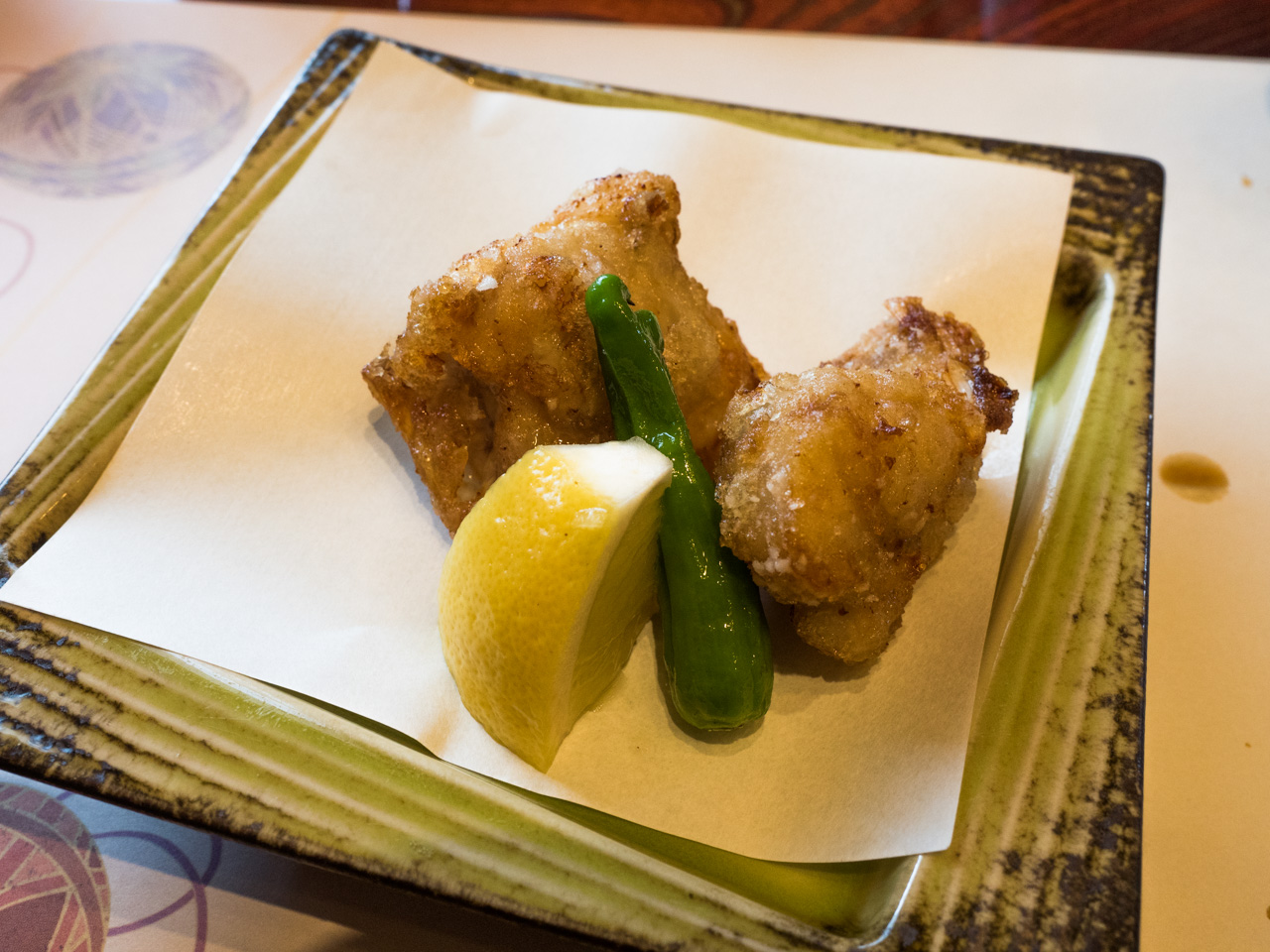 Anschließend frittierter Fugu, beides angenehm aber nicht aufdringlich nach Fisch schmeckend.
