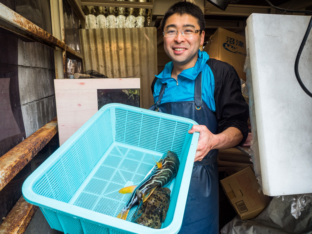 Pünktlich um 09:00 Uhr am nächsten Morgen stehe ich also wieder vor dem Restaurant. Freudestrahlend werde ich empfangen und bekomme sogleich stolz den noch lebenden Fugu präsentiert. Sogar zwei unterschiedliche Arten.