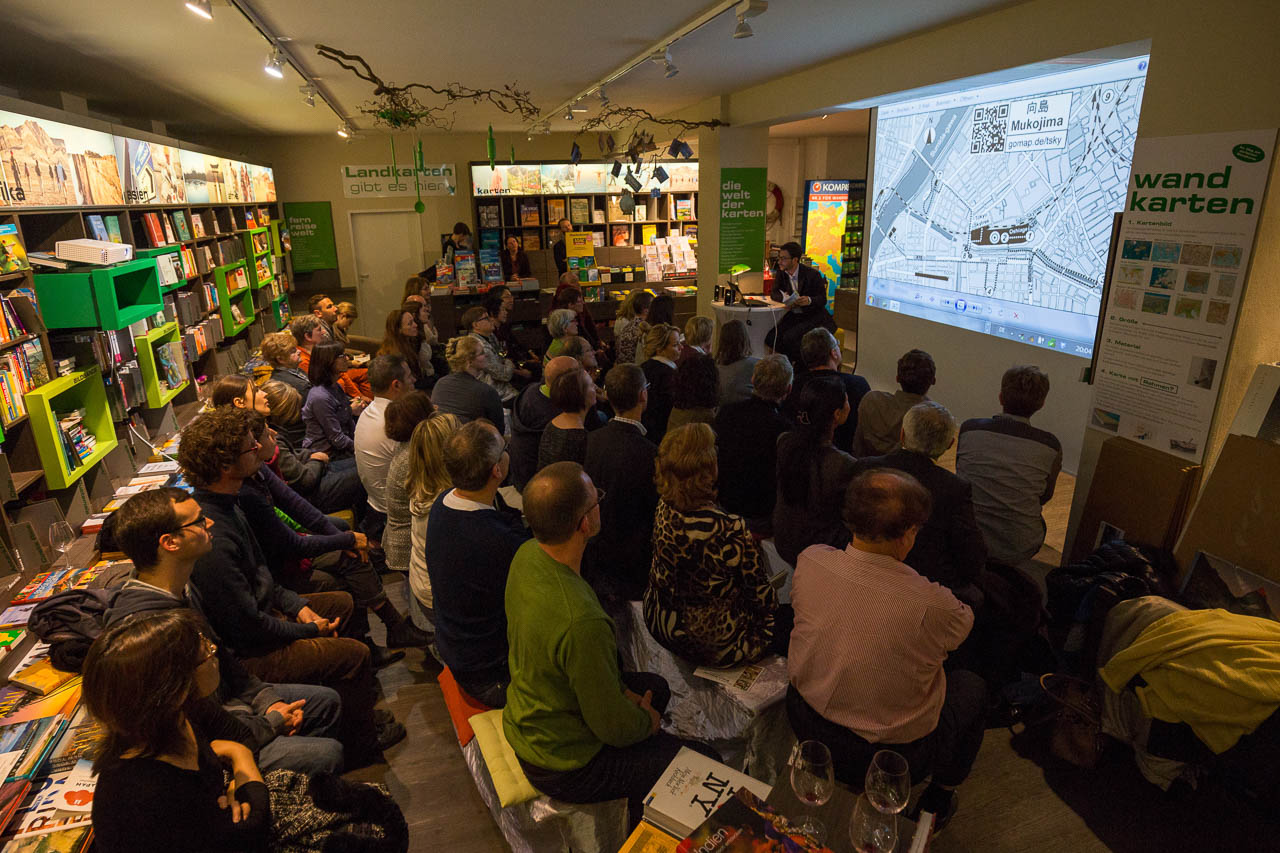 Letzten Donnerstag habe ich bei Geobuch am Viktualienmarkt meiner erste Buchlesung mit dem Titel “Japan – Geschichten aus Tokio und München” gehalten. Es waren fast 50 Zuhörer gekommen, die ich zunächst mit einer Bildershow von meinen letzten Tokio-Reisen nach Japan „entführte“. Anschließend erzählte ich Hintergründe und Anekdoten zum Reiseführer “Labyrinth Tokio” und dem Restaurantführer “Japan in München” und las Passagen daraus vor. Über die Fragen und Diskussionen mit den Zuhörern habe ich mich sehr gefreut. Am Ende durfte ich auch einige Exemplare der Bücher signieren, meinen japanischen Stempel („Hanko“) hatte ich dafür mitgebracht. Besonders bedanken möchte ich mich bei Vladimir, dass spontan seine Kamera zur Lesung mitgebracht hatte und mir die Bilder für den Blog zur Verfügung gestellt hat.
