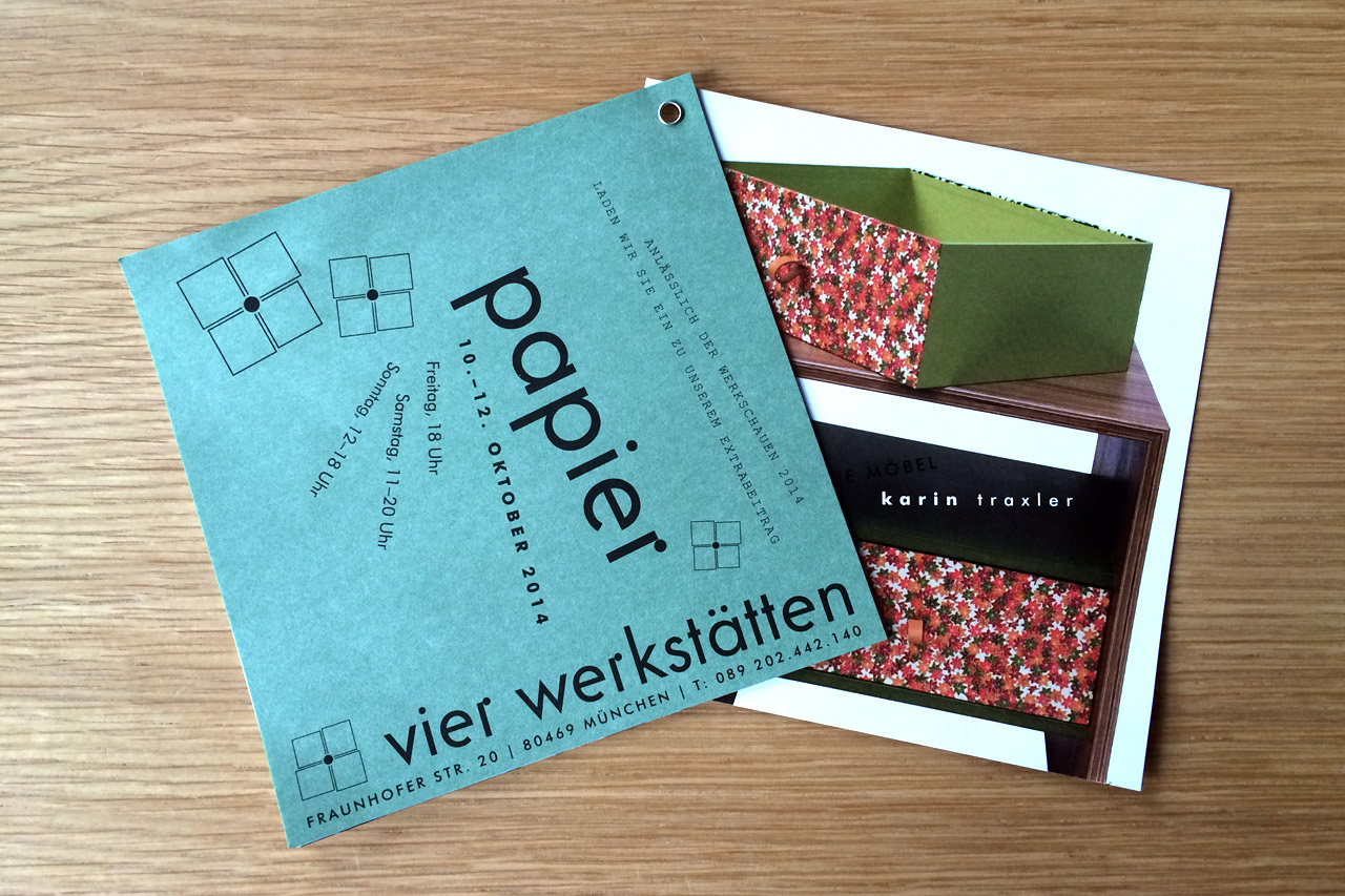 Am kommenden Wochenende (10-12. Oktober) finden in München wieder die Werkschauen der in München ansässigen Künstler, Designer und Handwerker statt. Im Laden Vier Werkstätten in der Fraunhoferstr. 20 stehe das Thema Papier ganz oben und unter anderem wird Frau Traxler mit Japanpapier bespannte Kleinmöbel zeigen. Desweiteren Lampenschirme und Mobile (Anna Hössle), handgewebte Schals aus 100% … Weiterlesen